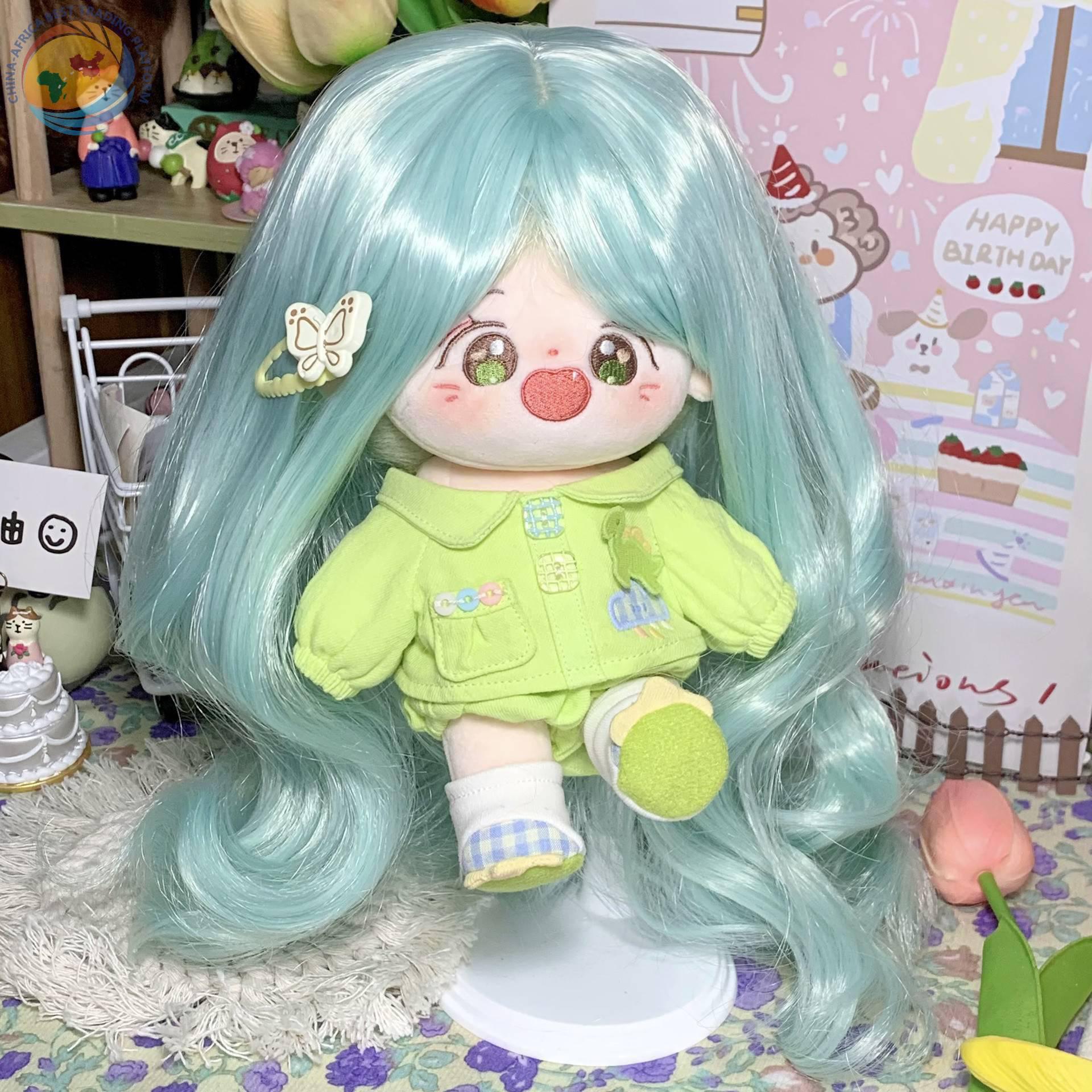 Green wig 20cm cotton doll hair solid color long curly hair doll Princess doll doll hair set shot