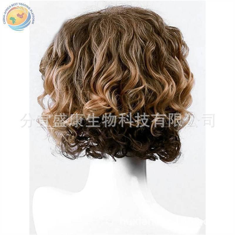 跨境新品欧美男士假发斜刘海化纤短卷发玫瑰网全头套厂家现货批发