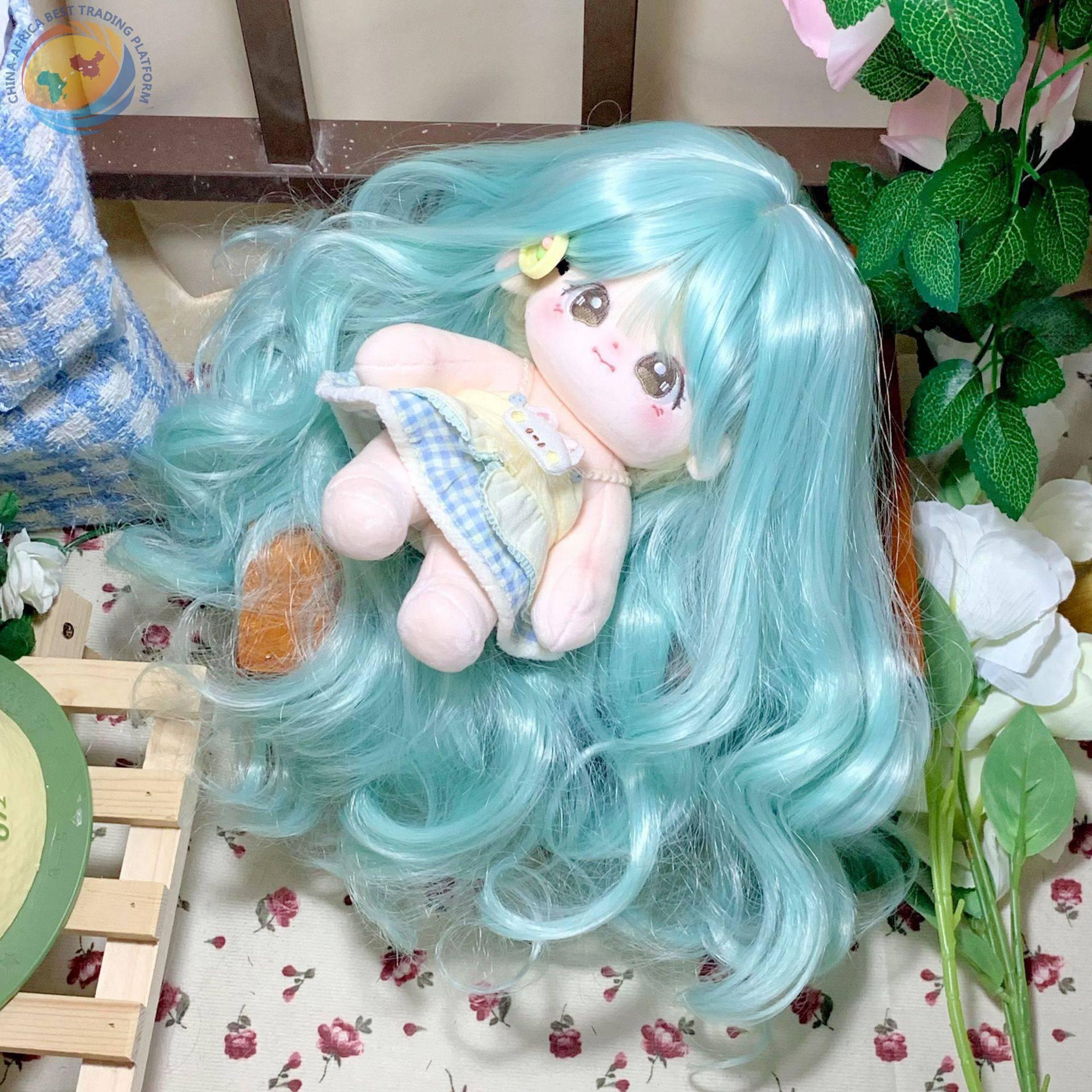 Doll wig Cute little princess 20cm cotton doll hair Green long curly hair doll dress up wig head cover
