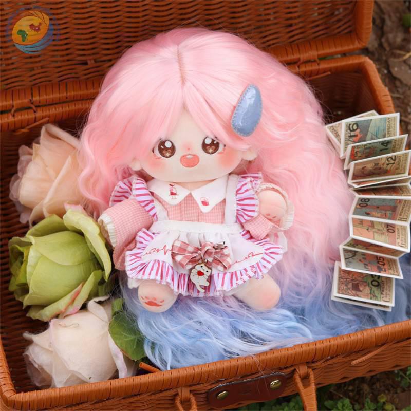 20cm棉花娃娃假发 粉蓝色渐变羊毛卷高温丝长卷发假发头套 厂家