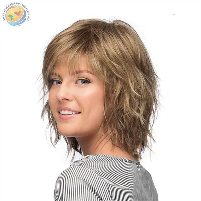 跨境欧美女士假发短款渐变色时尚白人假发化纤头套蓬松卷发wigs