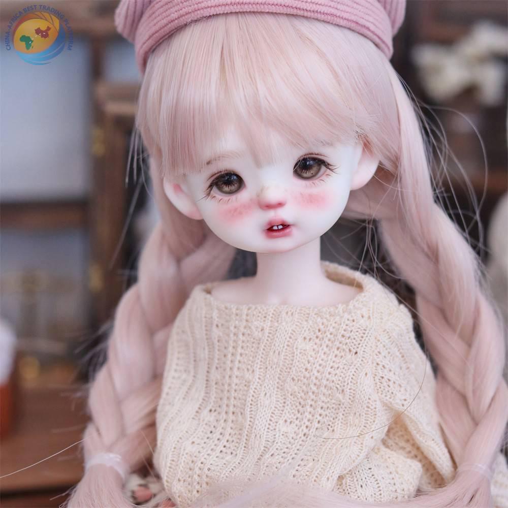 BJD doll wig set doll head SD doll Fake hair little Barbie doll 6 points double braid pink hair real shot