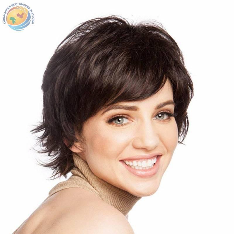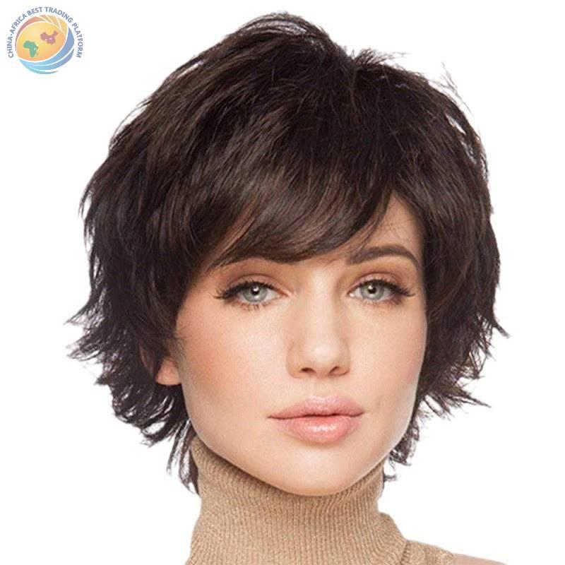 跨境欧美假发女士气质时尚短卷发棕色蓬松化纤发头套厂家现货批发