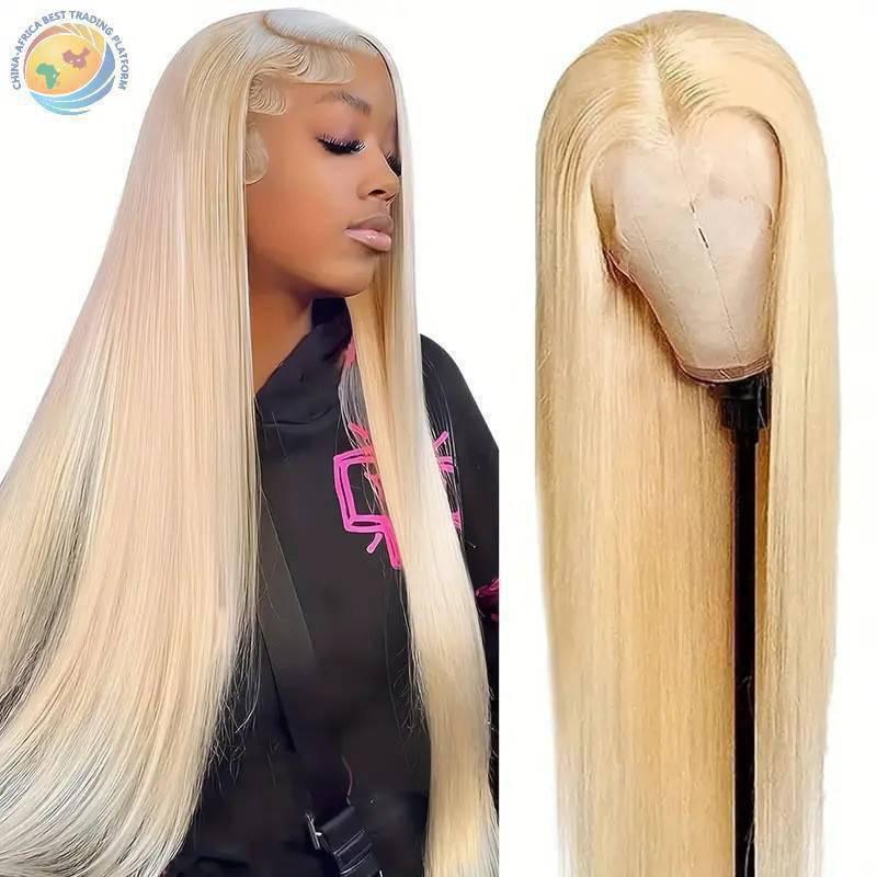 Cross-border wig European and American women's former lace chemical fiber head cover light gold medium long straight hair spot wholesale