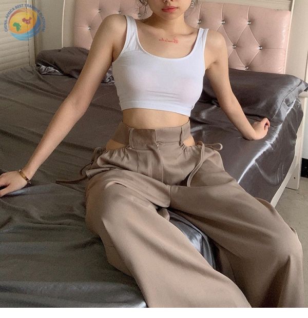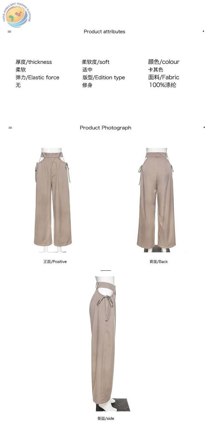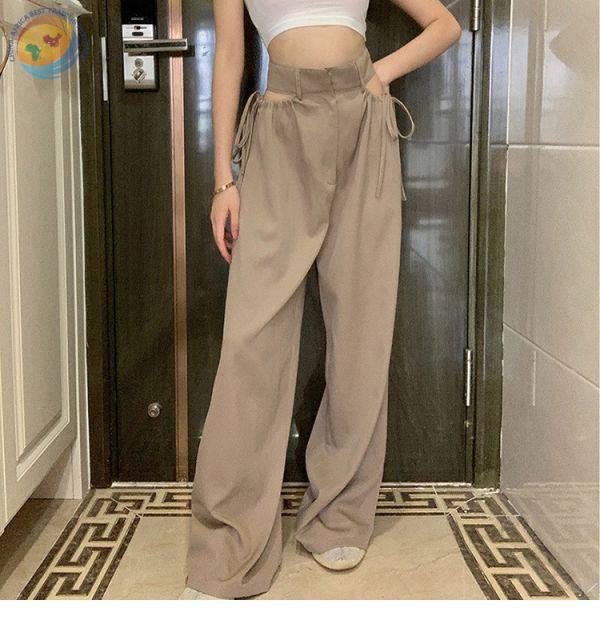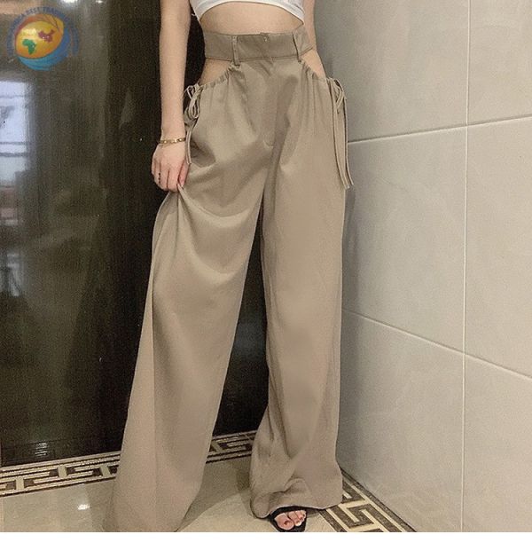 高腰阔腿裤垂感心机镂空设计感休闲裤女春宽松