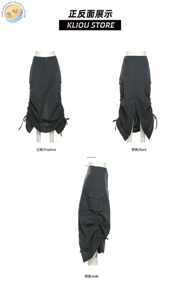 街头复古做旧低腰半身裙女个性抽褶系带开叉显瘦中长裙