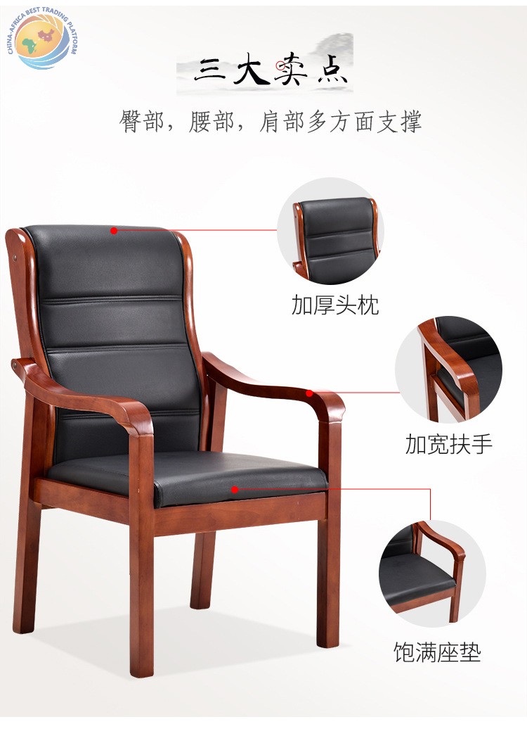 现代简约实木会议椅皮椅橡木红色将军椅会议室耳朵椅礼堂培训四脚
