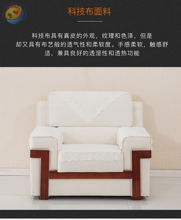 贵宾接待室会议沙发布艺可拆洗沙发办公洽谈茶几中式白色单人组合