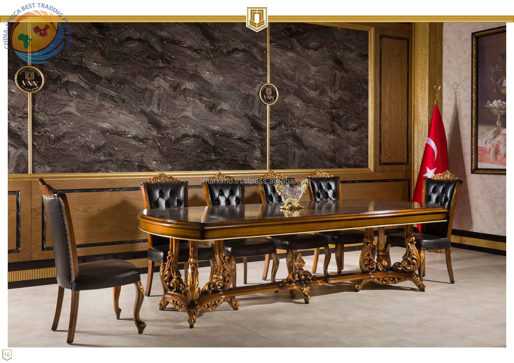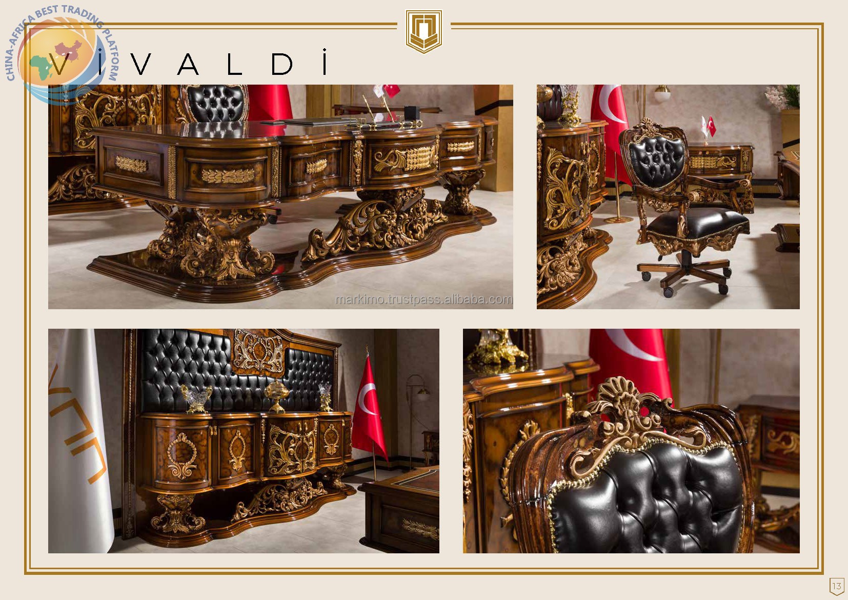 古典手工制作皇家办公家具豪华总裁经理办公桌实木土耳其棕色皮革黄金优质畅销