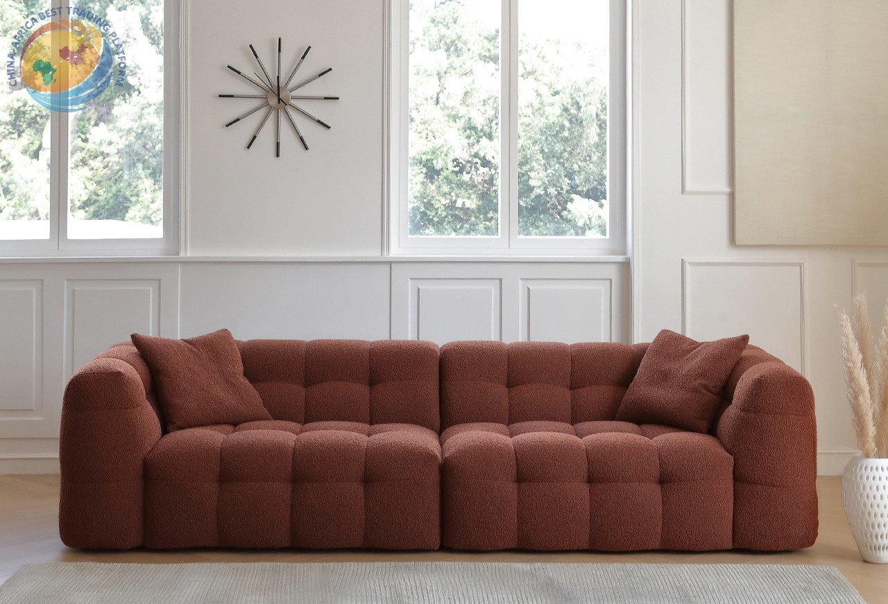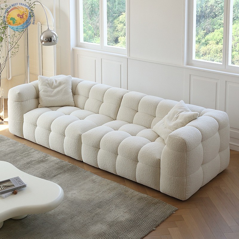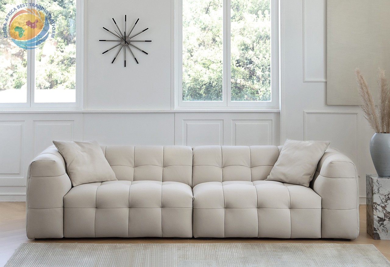 米色l形斯堪的纳维亚沙发躺椅与时尚家具木框