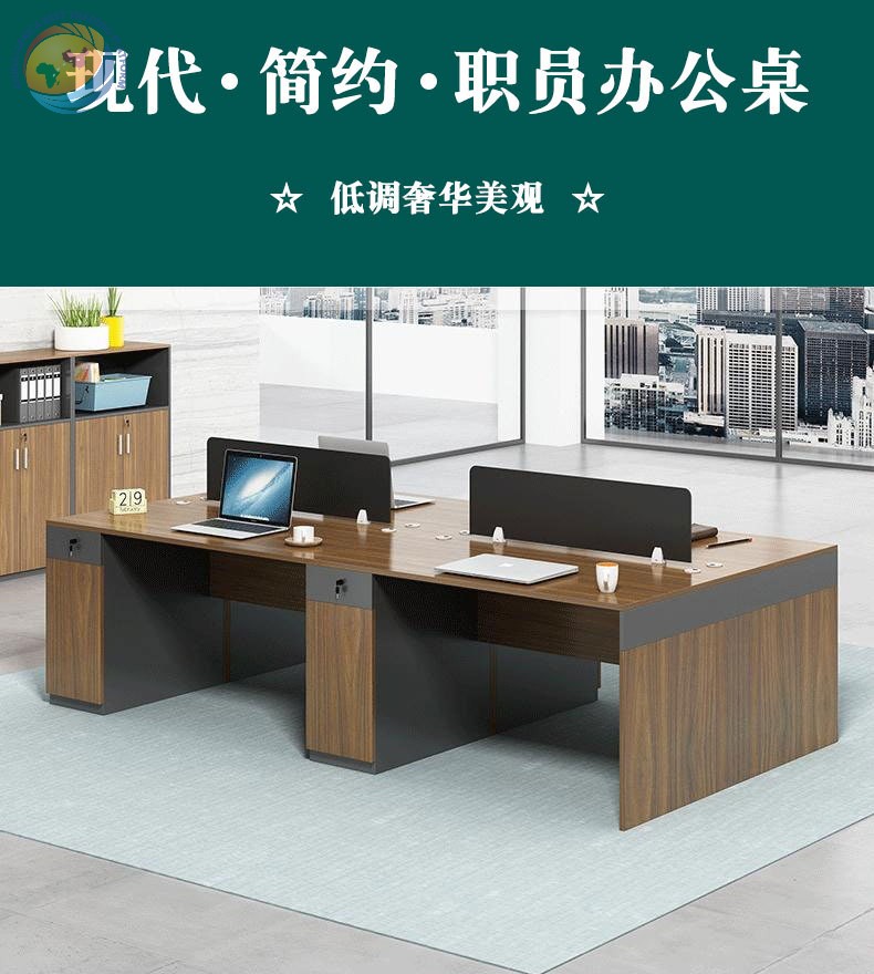 现代办公桌椅组合六人位板式财务员工办公室电脑桌带侧柜办公家具