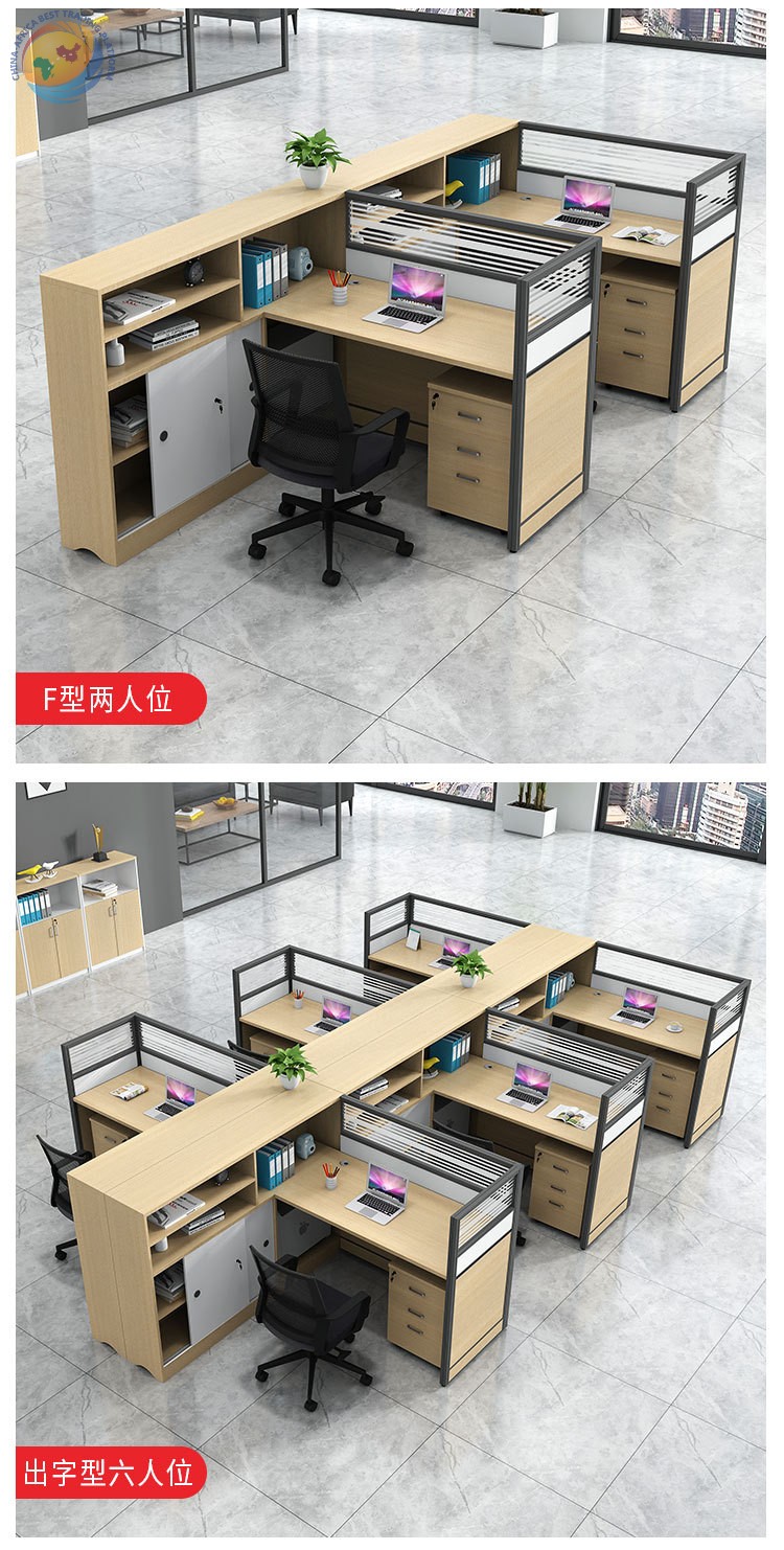 现代简约职员屏风办公桌定制板式隔断卡座四人位员工桌带侧柜卡位