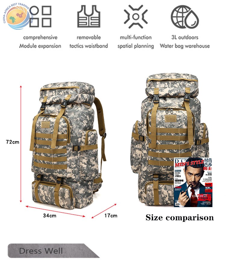 80l户外运动战术攀登登山背包露营徒步旅行背包旅行户外战术背包
