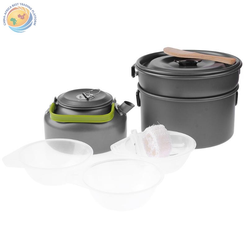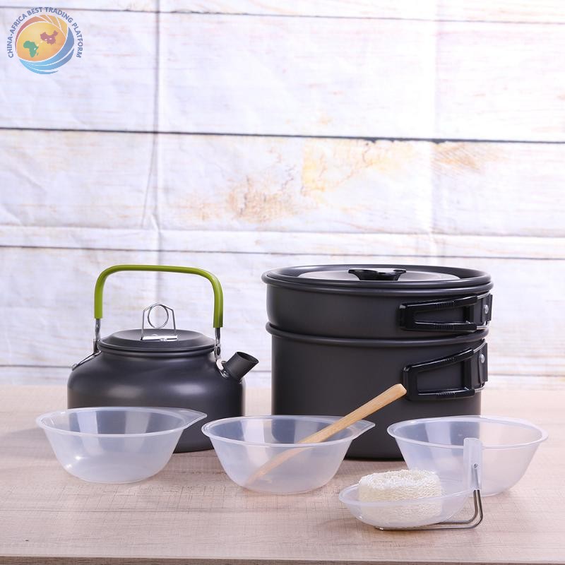Ajoteqpt户外Ds-308锅组组合氧化铝便携式露营锅与网眼集袋背包,徒步旅行,野餐