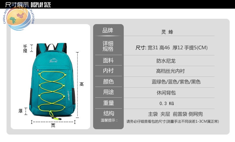 可折叠旅行双肩包男女防水皮肤包户外包运动定logo登山背包旅行包