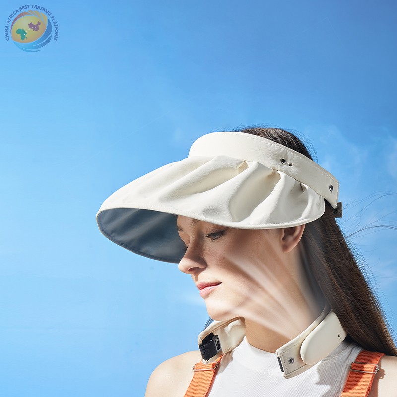 可拆卸帽颈风扇3合1保护太阳帽风扇Usb可充电徒步登山帽Usb挂风扇