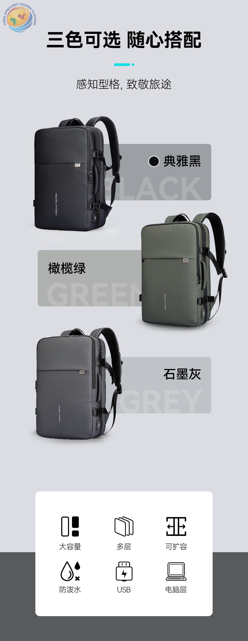 Mark Ryden跨境新款背包大容量扩容双肩包男商务旅行背包广州箱包