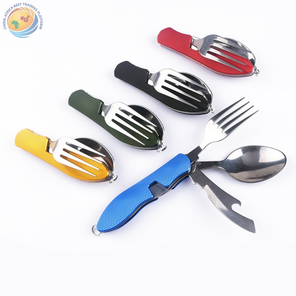 野营折叠钛勺叉,户外野营餐具野餐超轻徒步旅行便携式钛折叠叉/