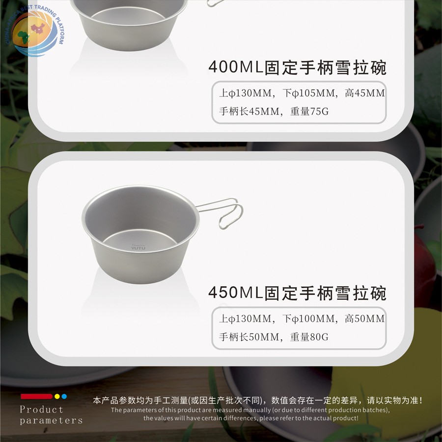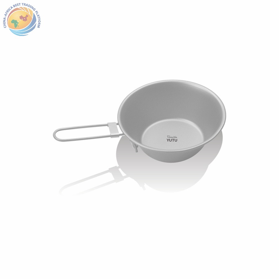 户外纯钛折叠雪拉碗固定手柄饭碗泡面碗露营野炊钛杯便携直径13CM