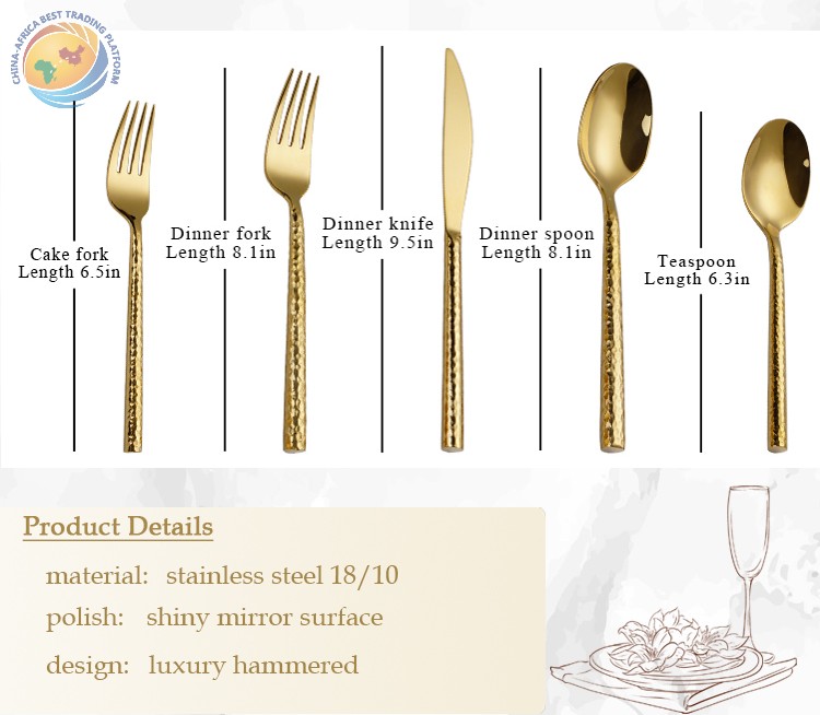 重型银器婚礼不锈钢18/10镀钛锤打金餐具套装