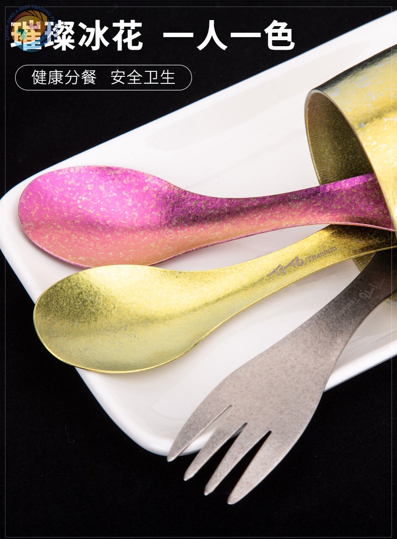 现代环保户外野餐集二合一钛野营叉和叉子盒装包装储存餐具