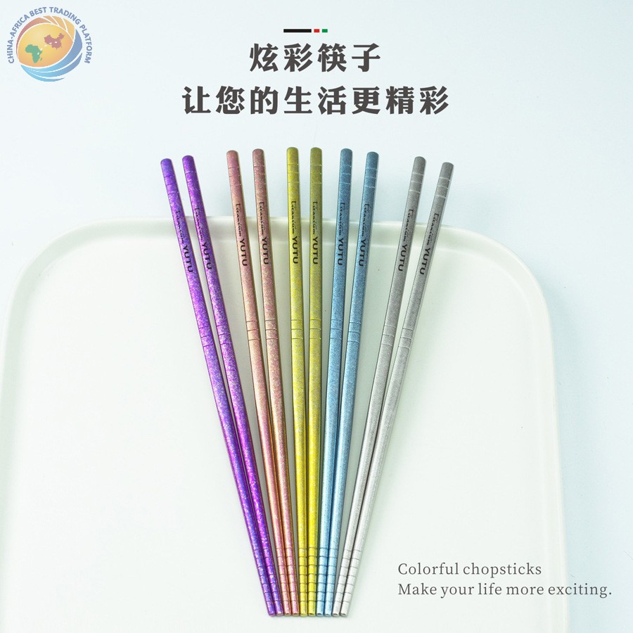 纯钛冰晶彩色六环快子冰花钛合金餐具家用儿童分餐野营单双便携筷