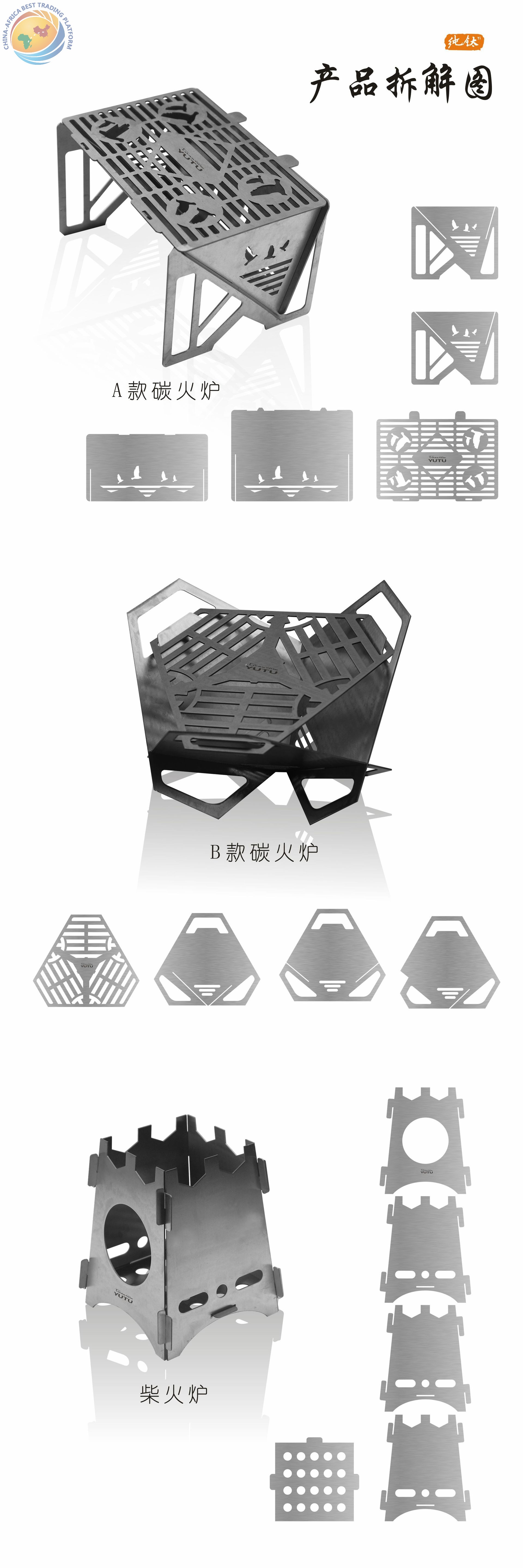 纯钛烧烤架户外烤架露营防风取暖便携超轻高颜值围炉煮茶柴火炉