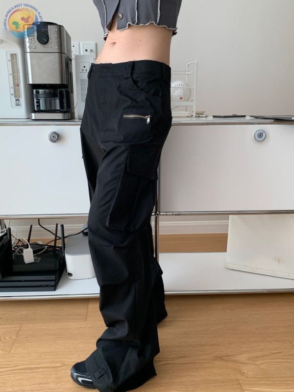 休闲时髦多口袋修身显休闲长裤阔腿高腰工装裤