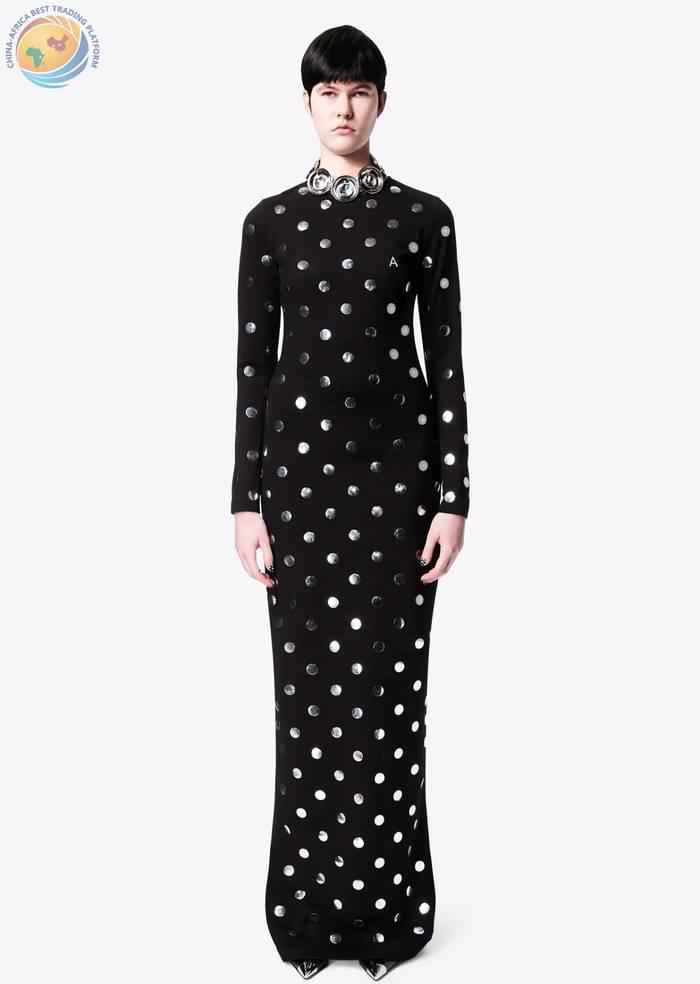 绷带连衣裙欧美优雅长袖圆钉高街礼服裙