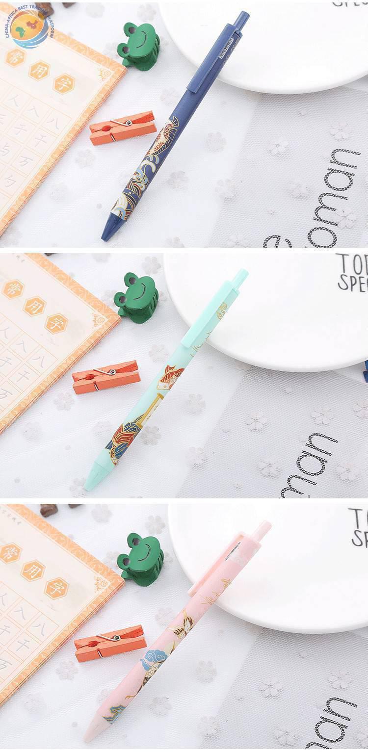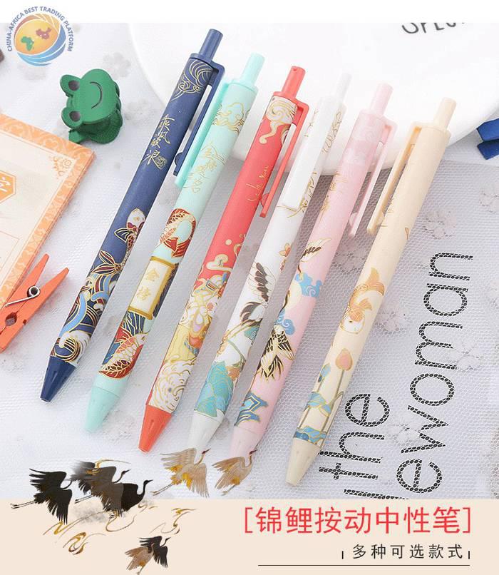 锦鲤按动笔复古国风系创意文具学生按压中性笔办公用品水性签字笔
