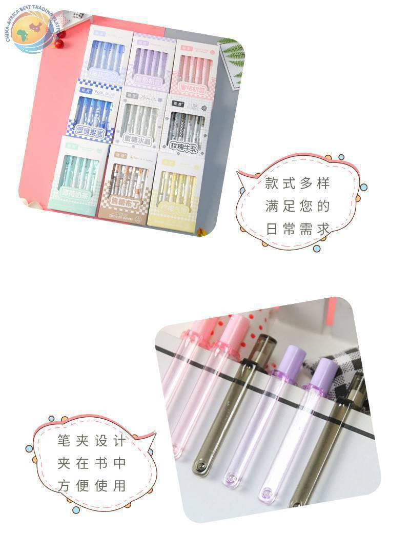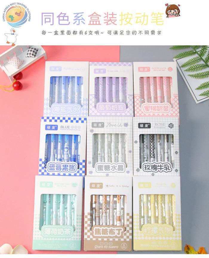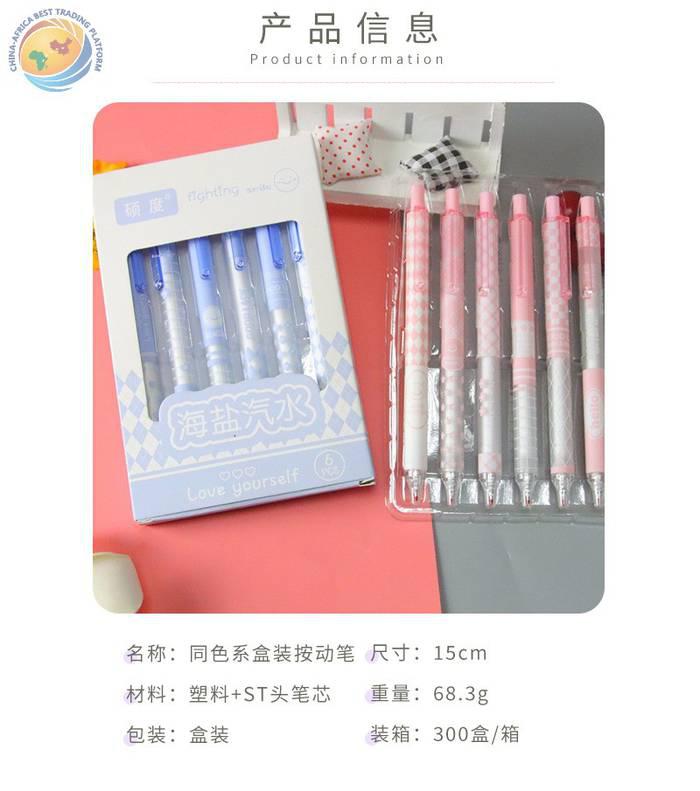 6支盒装ST头按动笔高颜值按压中性笔 创意学生刷题笔同色系签字笔