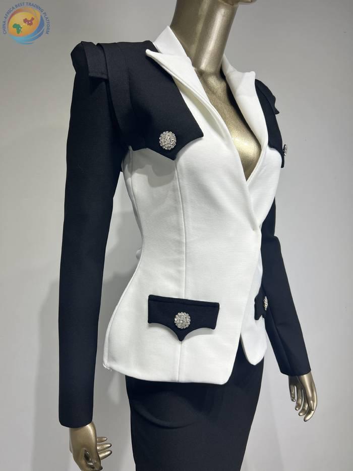 2024跨境外贸新品亚马逊热卖绷带两件套上衣欧美时尚高端黑白TOPS