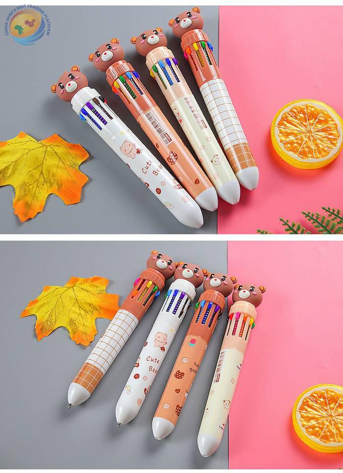 卡通小熊10色圆珠笔可爱文具学生书写工具彩色按动十色圆珠笔批发