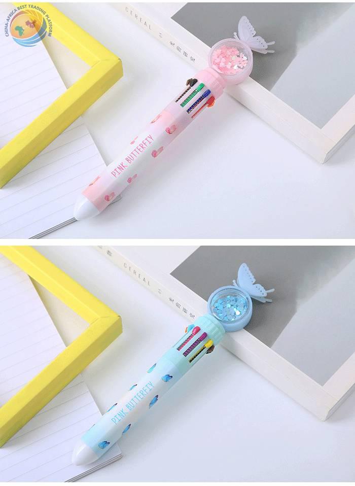 ins蝴蝶亮片圆珠笔 按动十色圆珠笔彩色涂鸦手账笔油性笔学生文具