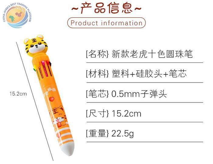 新款老虎十色圆珠笔彩色手账笔创意学生文具多色圆珠笔10色笔批发