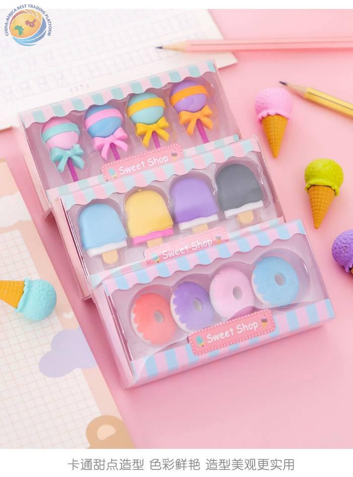 糖果色橱窗礼盒甜品棒棒糖橡皮擦套装学生创意文具橡皮擦