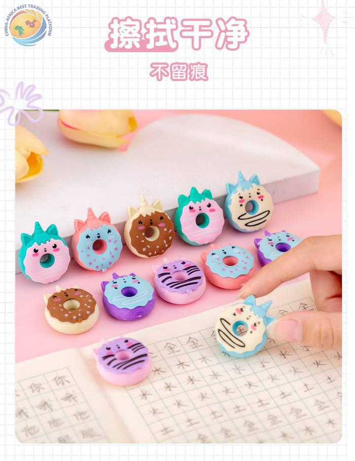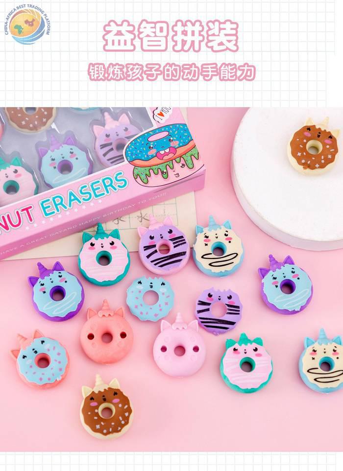 甜甜圈独角兽橡皮套装6个入学生文具套装六一期末圣诞奖品