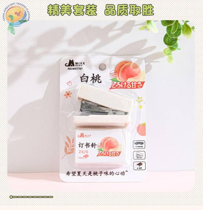 ins风白桃迷你小号订书机套装12号学生办公小型便携订书器