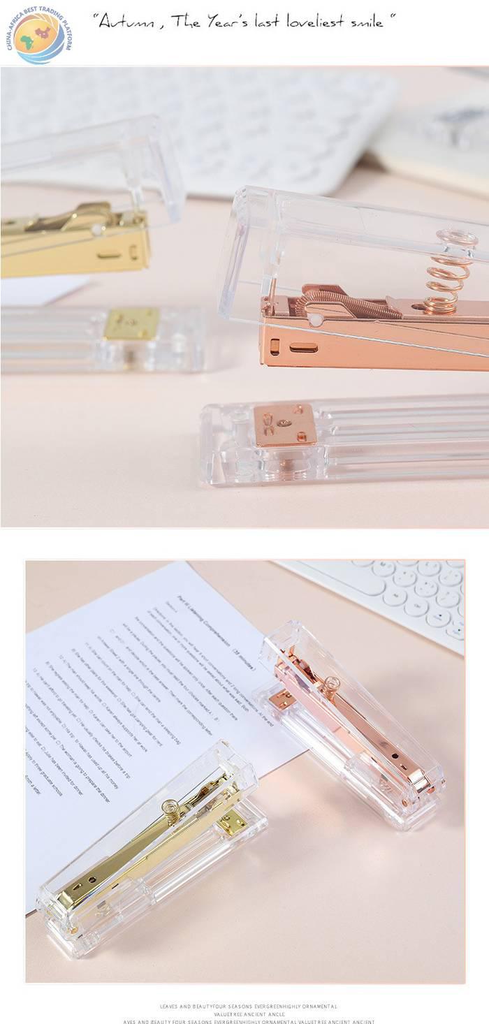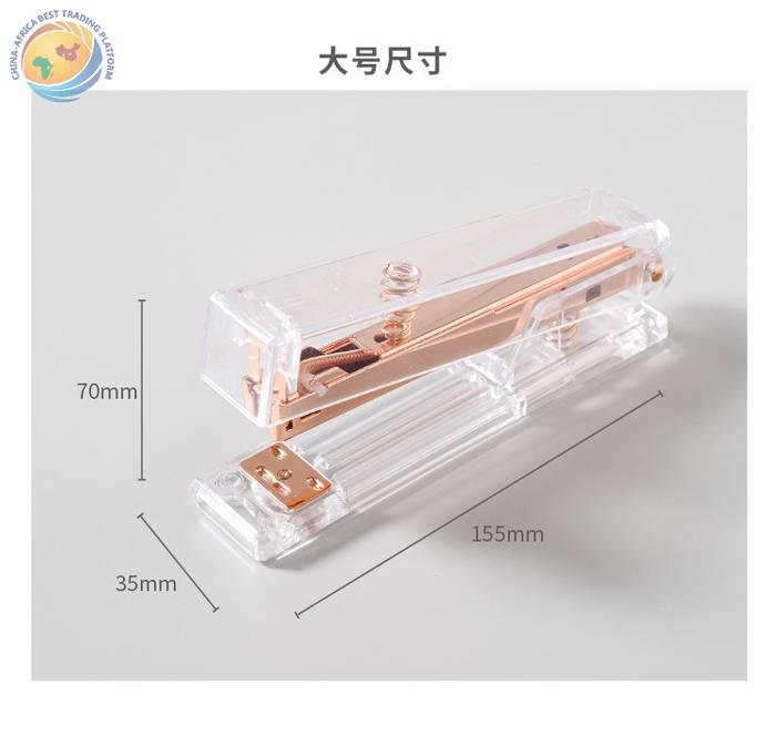 北欧轻奢玫瑰金透明订书机大小号方头办公省力订书器