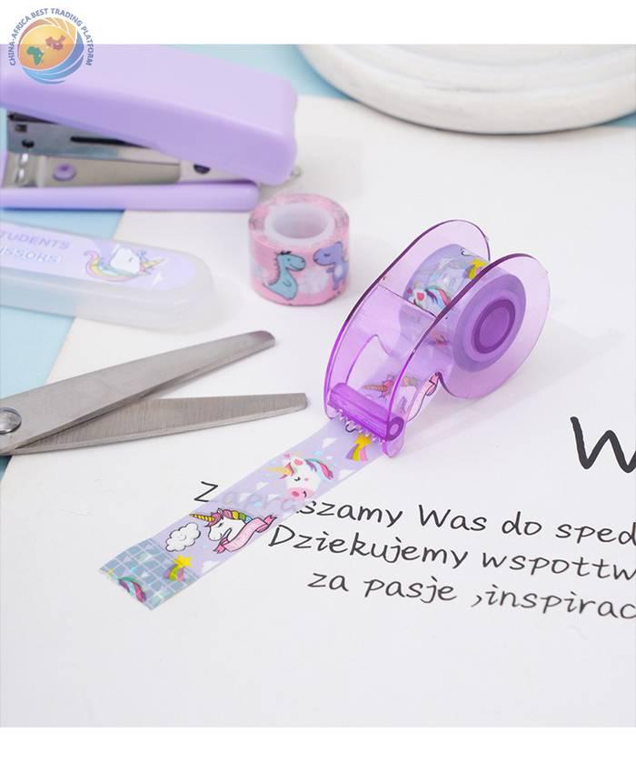 卡通订书机文具套装剪刀胶带座糖果色订书器套装组合