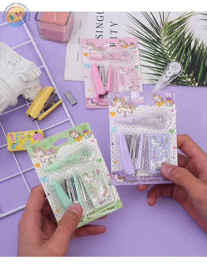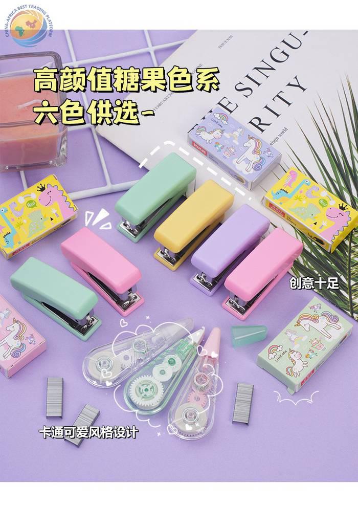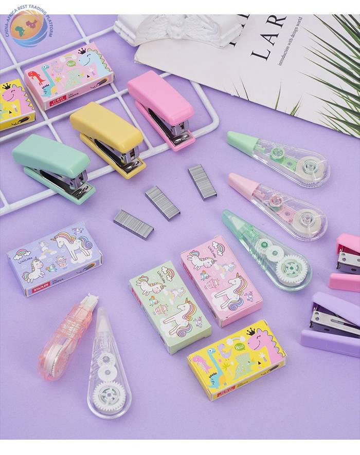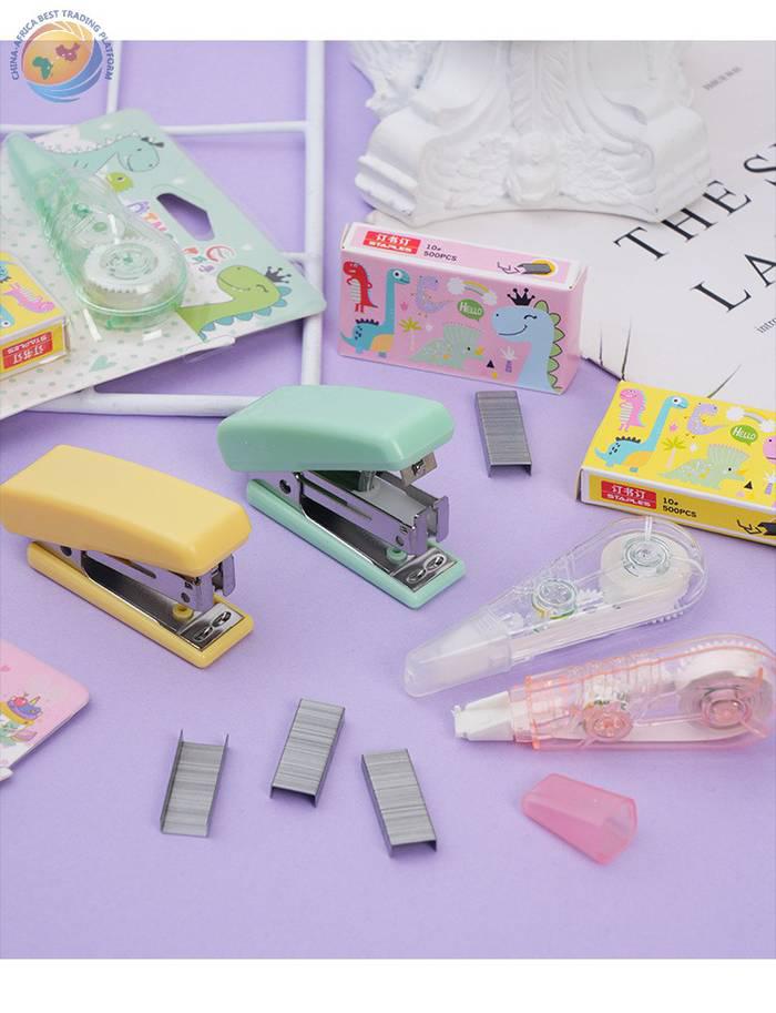 Cartoon stapler set correction tape combination high appearance level candy color student stationery office