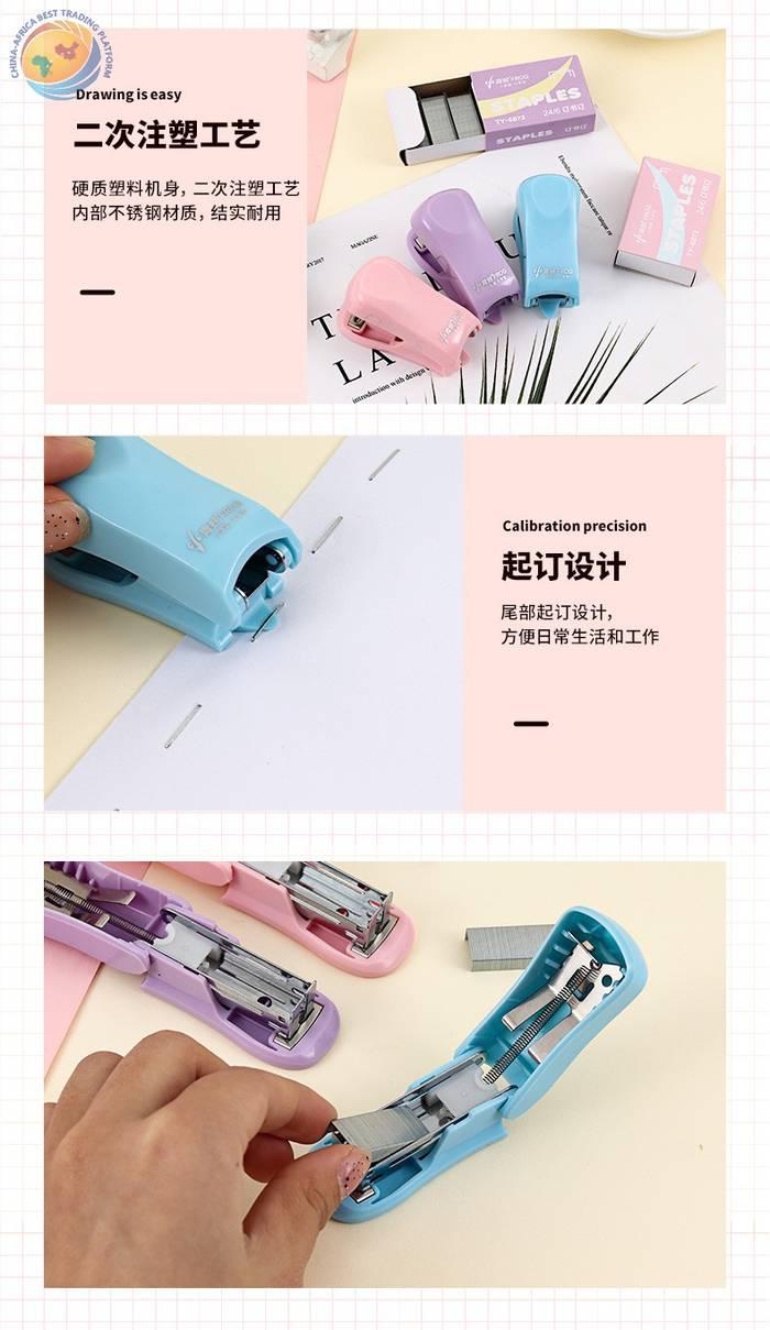 创意迷你订书机套装办公用便携学生文具马卡龙色订书器