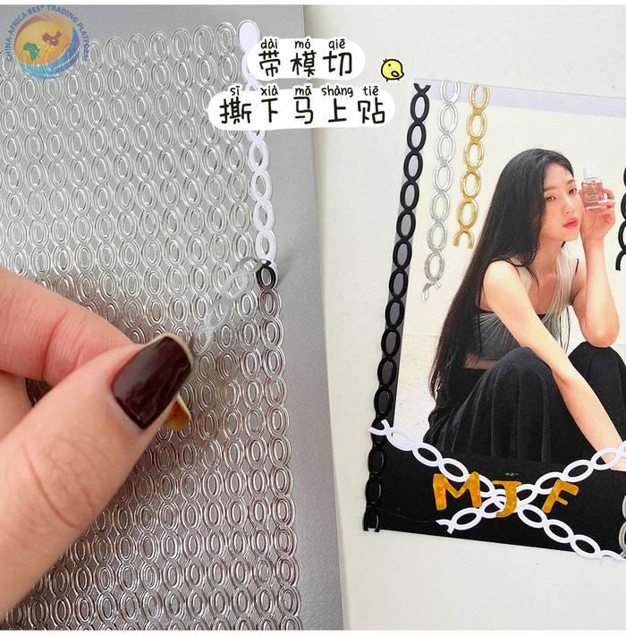 韩国ins条纹链条基础咕卡贴纸烫金DIY小卡装饰素材手帐