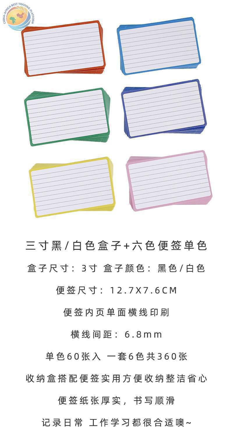 桌面彩色便签横线本子记事超厚360张单词本卡片收纳盒