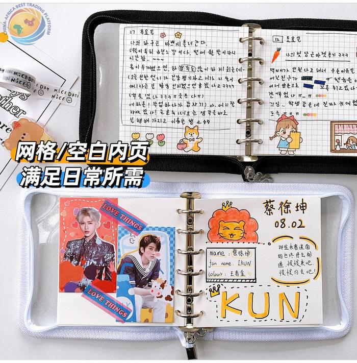 自制少女心粉紫方形活页本A7加宽pvc拼贴拉链相册