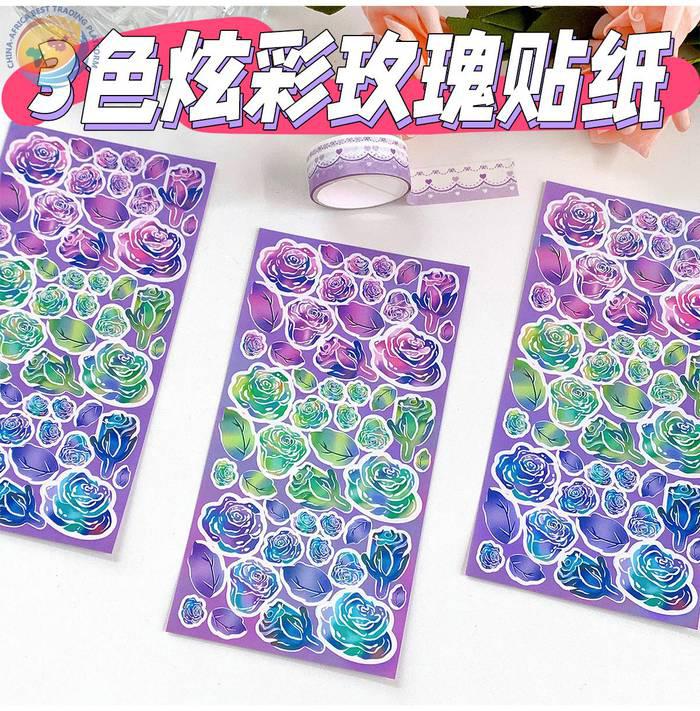 ins Super can der reflective laser sticker Maple melt rose sticker gradient love sticker