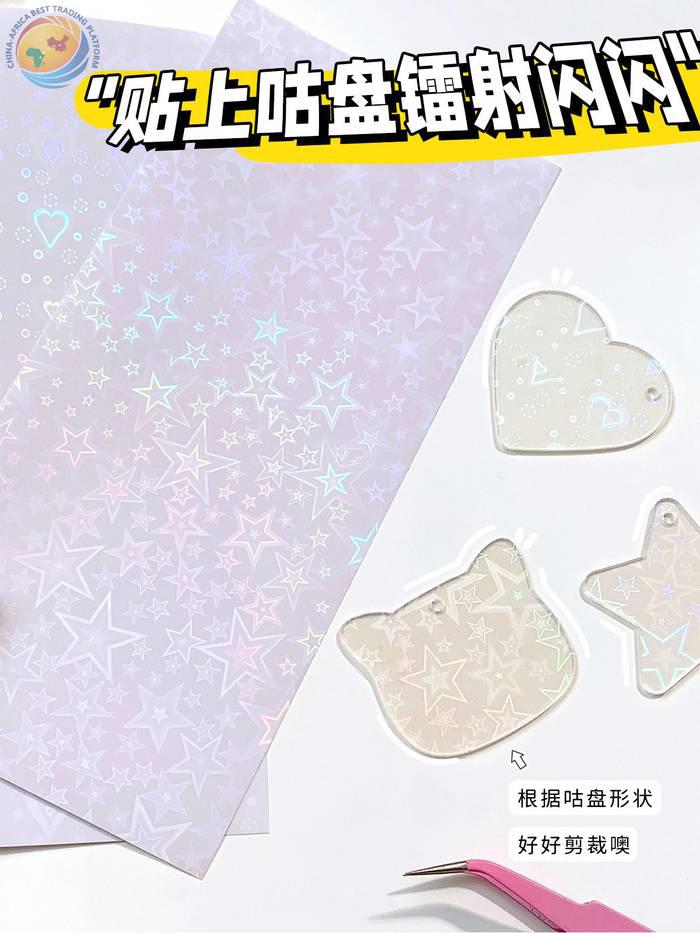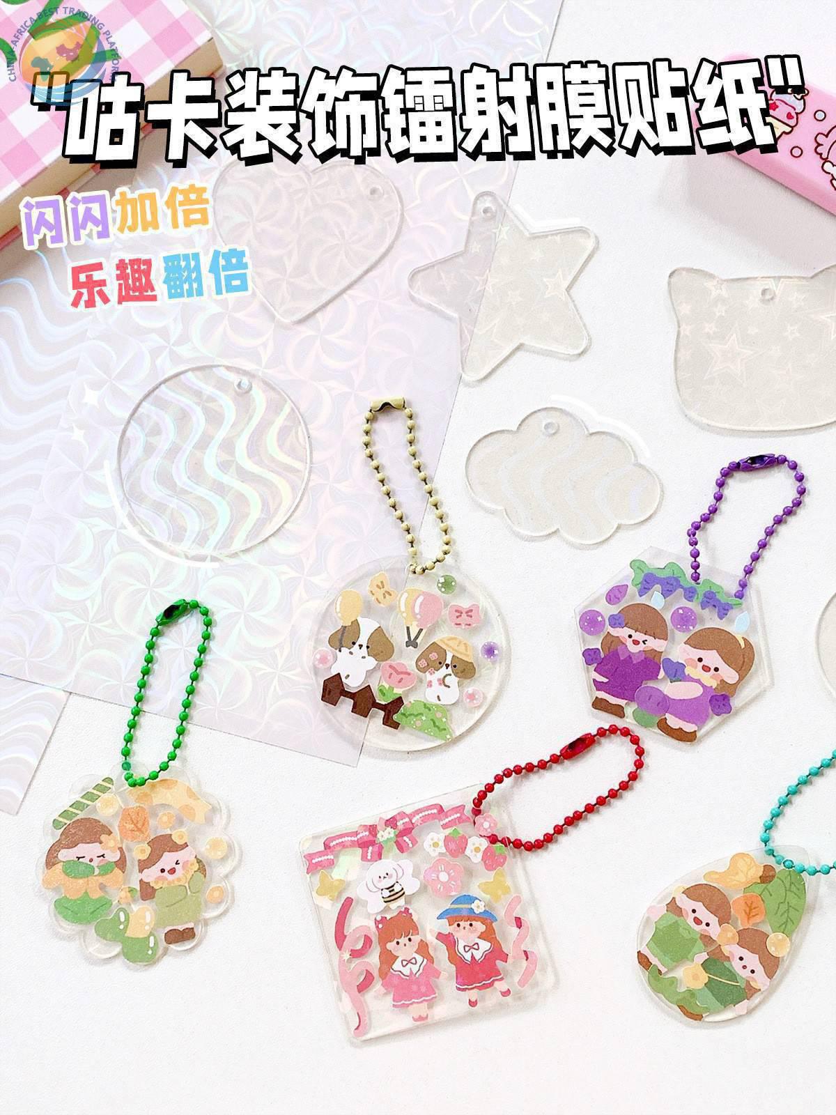 diy镭射超美手工闪闪透明膜贴纸6张入配咕盘挂坠珠