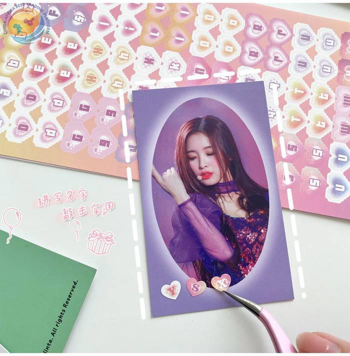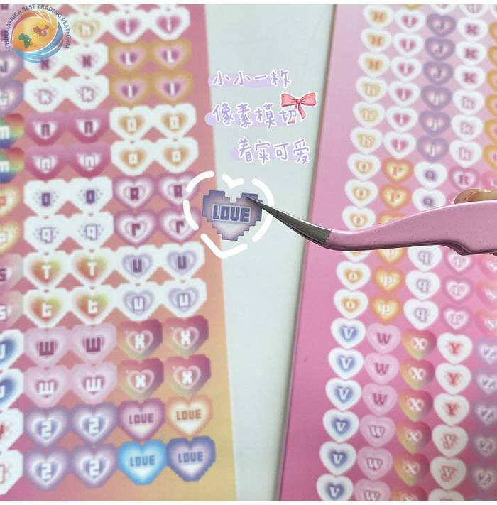贴纸粉色系像素字母贴爱心英文贴纸相册DIY装饰