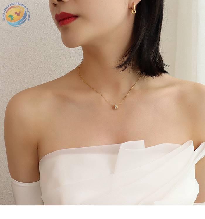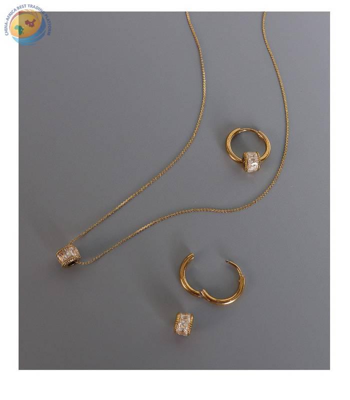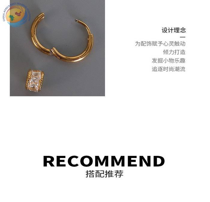 French light luxury diamond set geometric earrings titanium steel plated 18K gold women\'s jewelry