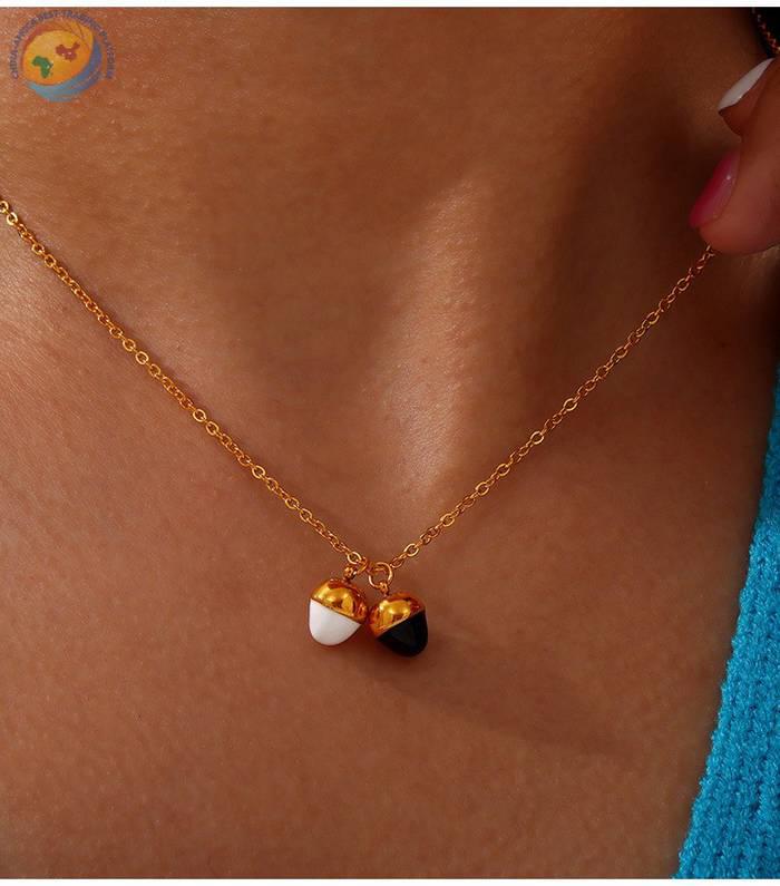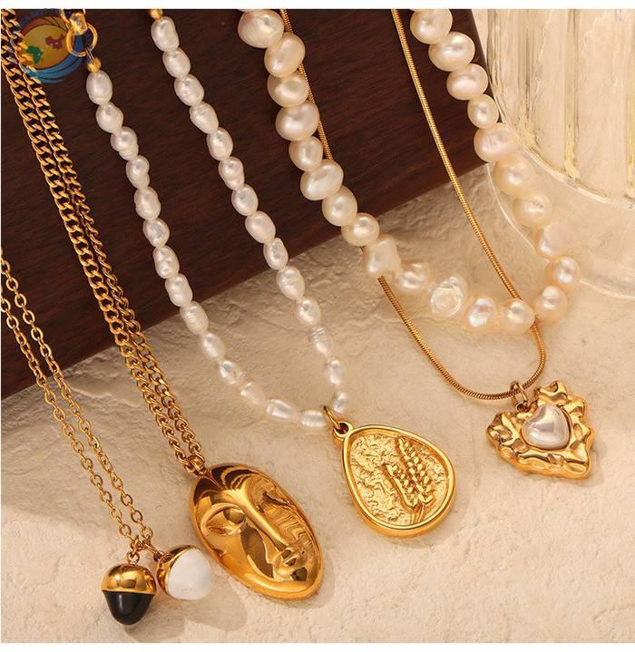 ins Wind personality Fresh water pearl geometric texture design sense pendant titanium steel gold-plated necklace